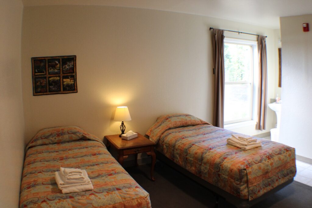 Our two-story lodge combines comfortable lodging with functional meeting space and a refreshment station. All 16 guest rooms feature private bathrooms and in-room amenities including TV. Linens are provided. First-floor rooms offer easier access for guests with limited mobility.