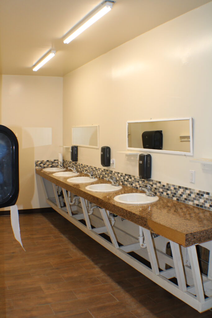 Clean, comfortable restrooms and showers with separate entrances for men and women.